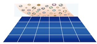 曇りの日や雨の日は、晴れの日よりは少なくなりますが、発電します。 |